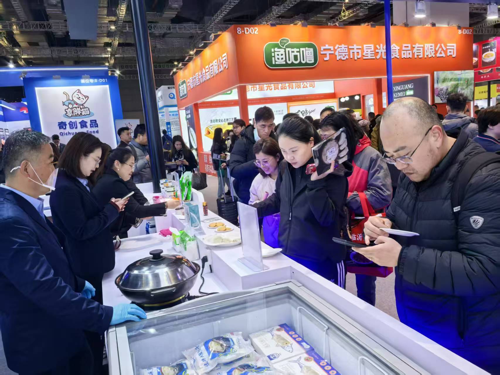 在展會(huì)現(xiàn)場(chǎng),宇王集團(tuán)帶來(lái)的鲅魚水餃以其鮮美的口感和精致的包裝征服了眾多食客。一位來(lái)自上海的觀眾表示:“鲅魚水餃的口感非常獨(dú)特,肉質(zhì)鮮嫩,餃子皮薄而有韌性,完全超出了我的預(yù)期!”而烤魚則以地道的風(fēng)味和創(chuàng)新的呈現(xiàn)方式吸引了大量觀眾排隊(duì)試吃,現(xiàn)場(chǎng)氣氛熱烈。不少觀眾在品嘗后紛紛表示,無(wú)論是口感還是包裝設(shè)計(jì),都體現(xiàn)了宇王集團(tuán)對(duì)高品質(zhì)的追求。除了鲅魚水餃和烤魚,宇王集團(tuán)的罐頭產(chǎn)品也備受關(guān)注。